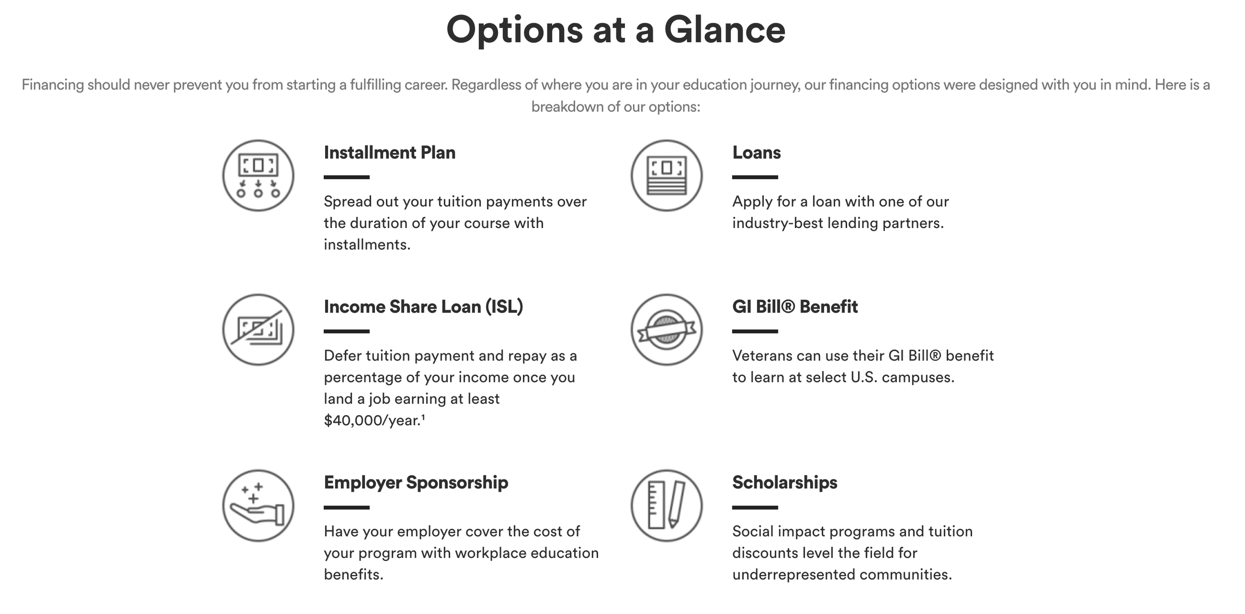 General Assembly may offer financing options or scholarships for qualified students. It's advisable to check with the admissions team for details on available financial assistance.